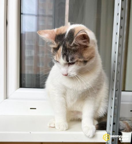 Юная трехцветная кошечка Хлоя очень хочет оказаться в объятьях любящих хозяев.