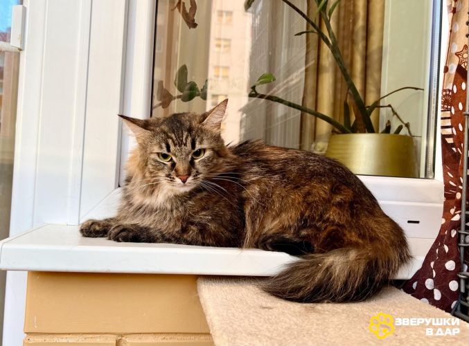 Чудесная кошка фенотипичная сибирячка, с необыкновенными огромными и выразительными глазами. В этом взгляде вся она девочка Джуди.