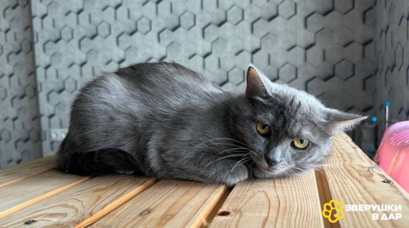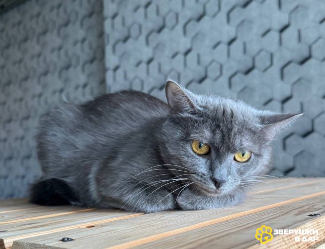 Ей 11 мес, выживала в подвале дома, пока не поймали ее на стерилизацию. В клинике она разгладилась, оказалась бояка, и совсем не дикая.