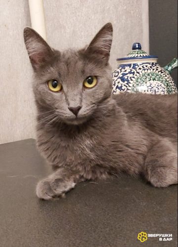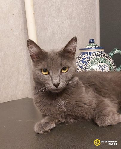 Кошка Дымка хотела бы найти новый дом. Это русская голубая, ей около двух лет. Кошка найдена под машиной, выросла и жила в квартире, но теперь хозяин уехал и не может о ней заботиться. Она стерилизована, весит 3,5 килограмма. После осмотра врача, сделано глистование, планируется прививка. Она доверяет людям, любит внимание человека.