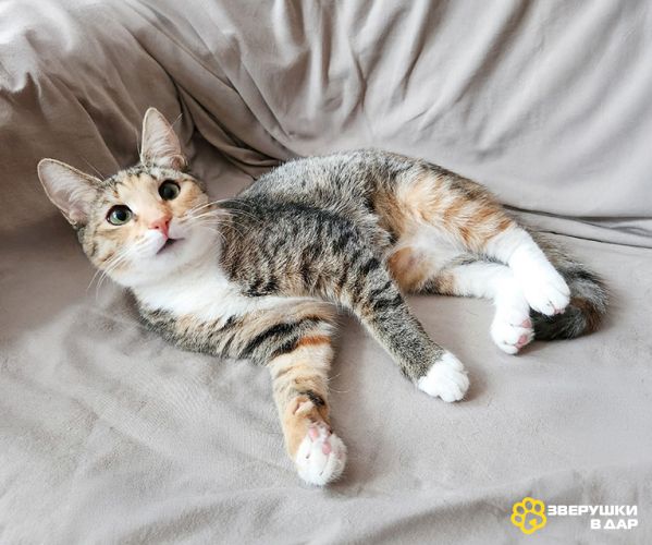 Игривая и ласковая, очень добрая, прекрасно ладит с кошками, спасена с улицы.