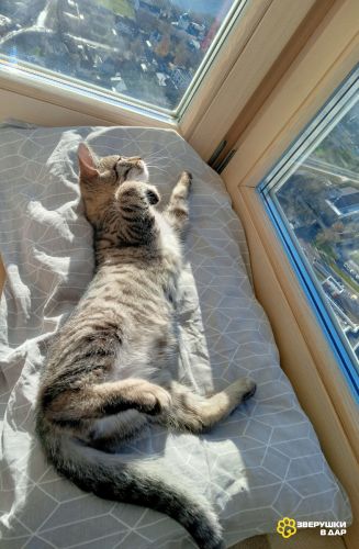 Юная леди Сима (примерно 3 мес) наполнит ваш дом теплом и сделает жизнь ярче и интереснее. Сима любит быть в центре событий. Она всегда в курсе, кто что делает в доме. Обожает забраться на руки, чтобы видеть всё с высоты. Сима — преданный друг, компаньон во всех делах, ласковая и нежная девчонка. Но с посторонними она — бояка: предпочитает спрятаться, когда через порог переступают незнакомцы.