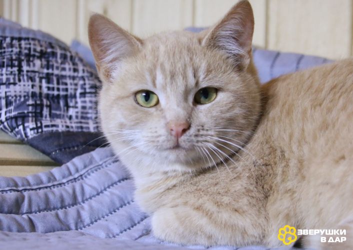 Прекрасная кремовая кошечка необычного окраса (редкий случай, когда такого окраса рождается именно кошечка). Настоящая девочка: очень нежная и аккуратная, кокетливая, ласковая, любит сидеть на руках и мурчать. Не боится камеры, фотографируется и позирует с огромным удовольствием. Возраст – 5-6 месяцев, сейчас идет активная смена клыков. Приучена к лотку, обработана от блох и глистов.
