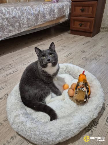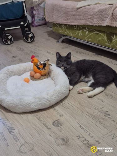 У котика отличный характер. Он очень ласковый к людям, нежный целовака, хочет общаться, обниматься, но ему нужно немного времени, чтобы привыкнуть к новым людям и обстановке. Спокойный. Желательно одним животным в семью.