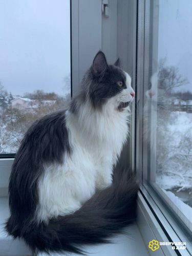 Молоденький котик-подросток. Возраст 8 мес. Обладатель шикарной пушистой шубки бело-серого окраса и любопытного розового носика. Мотя очень ласковый, игривый, активный котик, а уж какой красивый оцените сами!