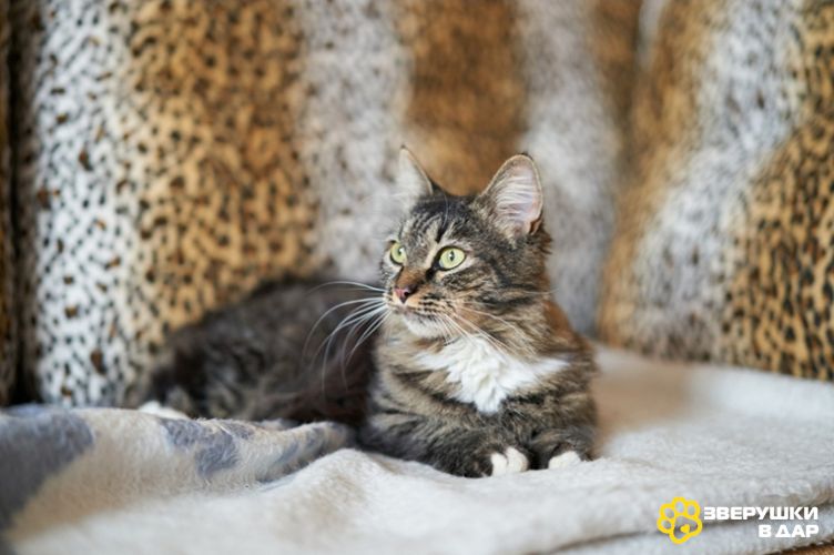Фунти – нежная, умная кошка. Ей около двух лет. Она стерилизована и здорова (есть результаты анализов).