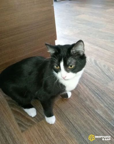 Котику около года, у него пока совершенно несчастные глаза, но он непременно изменится в любящей семье и снова начнет улыбаться.