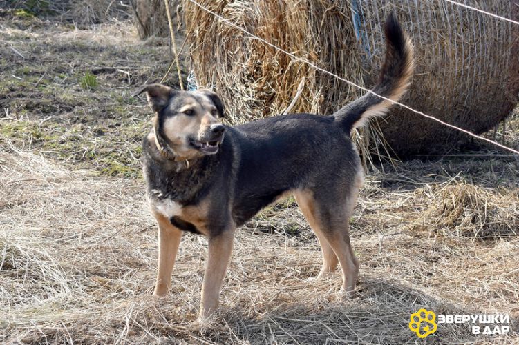 Дружелюбная, но стеснительная, ей нужно время чтобы довериться новому человеку. Возраст около 6 лет. В холке 60см. Стерилизована.