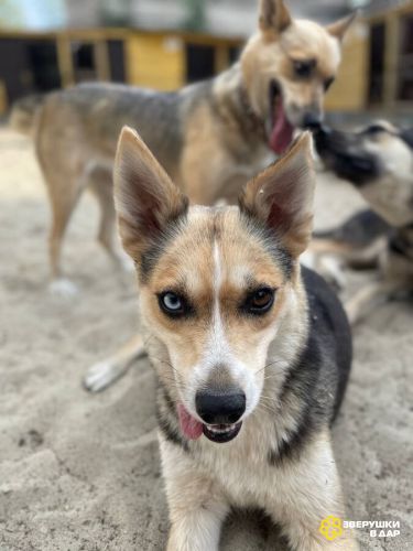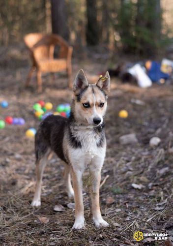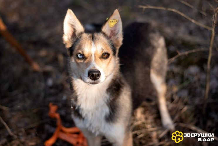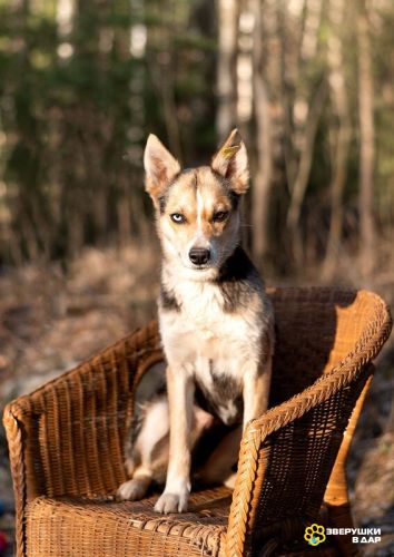 Сия — миниатюрная девочка весом всего 15 кг. Ей всего 1 год, она аккуратная и компактная — идеальна по размеру. Это метис хаски, и в ней чувствуется огонек.