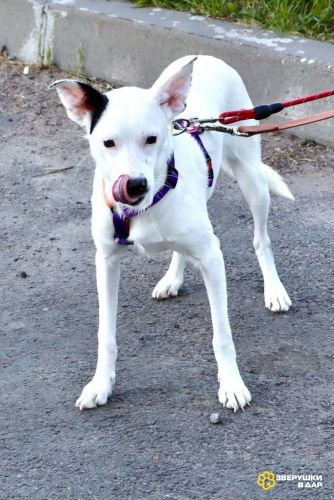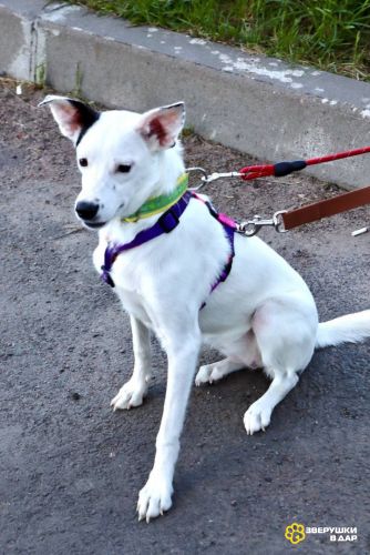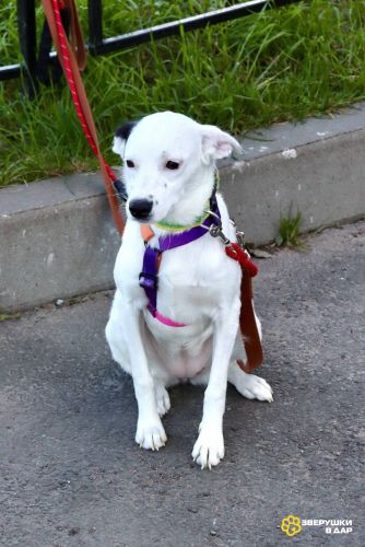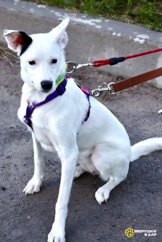 Красивая беленькая собачка с нежным характером. Игривая, общительная, дружелюбна с другими собаками.