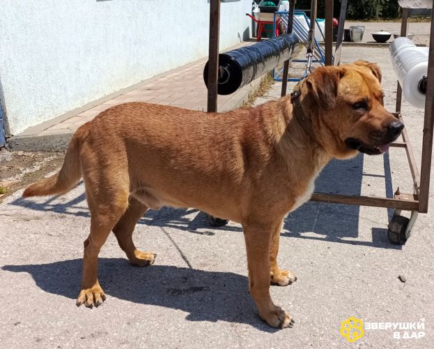 Бутч метис лабрадора, возраст 3-4 года, вес около 30кг, кастрирован, полностью обработан и вакцинирован. Пёс очень привязан к человеку, ведёт себя как ласковый телёнок. С кобелями не особо дружит, пытается лидировать, живёт с суками. В квартире терпит выгул и не хулиганит. Ест как сушку, так и натуралку. Доставка обговаривается.