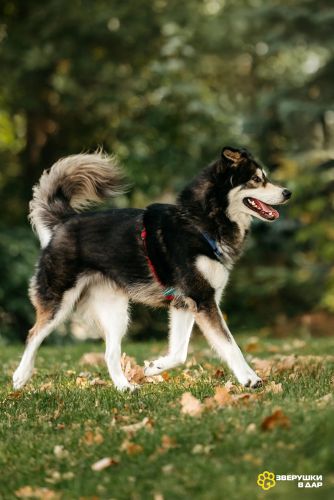 По внешности можно сказать, что он метис маламута или хася. Такой же красивый, активный и самодостаточный!