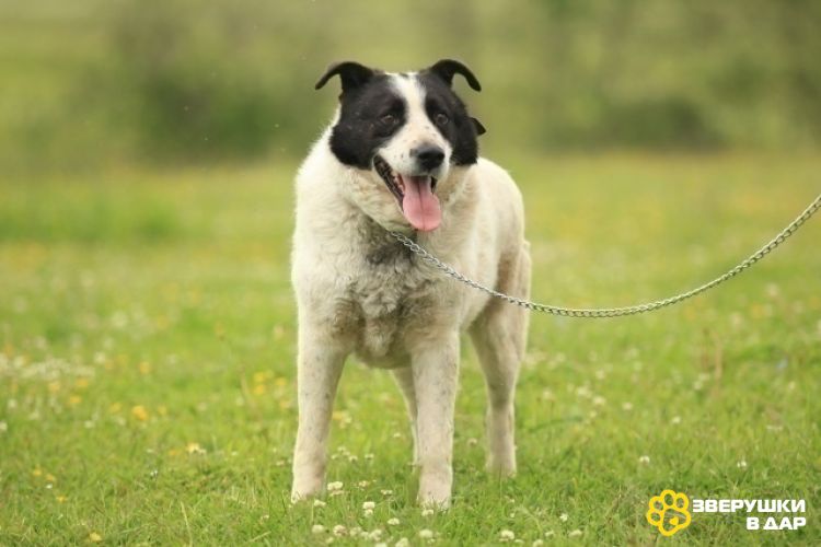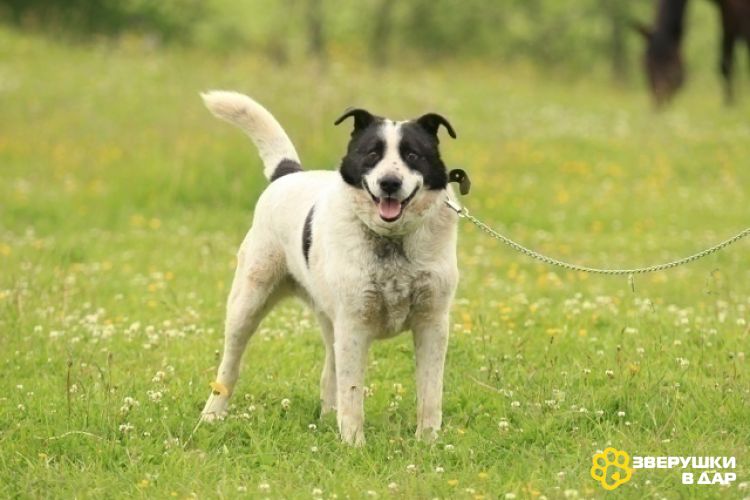 Вглядитесь в этого милого пса, столь готового отдать всю свою нежность тому, кого ещё не обрёл. Возраст Бима — около 4-5 лет, он среднего роста (примерно 55-60 см в холке), кастрирован и привит. Это истинно ласковый и дружелюбный компаньон, мирно сосуществующий с кошками и другими собаками (с кобелями выборочно), и невероятно ласковый с детьми.