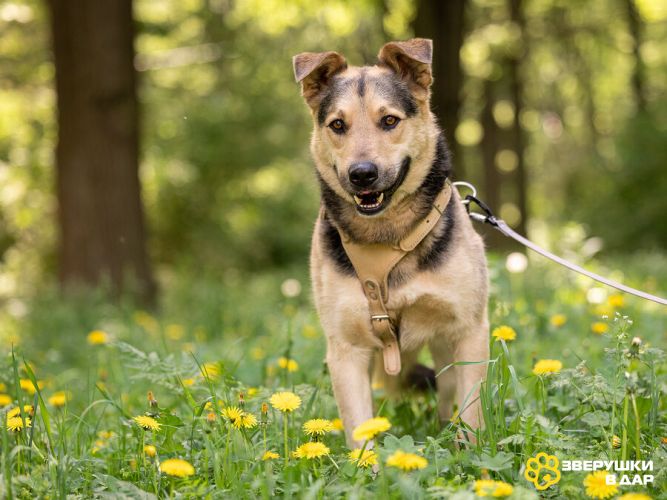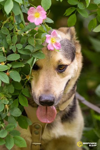 Барри около 4 лет. Он — метис овчарки, активный пёс с энергией, умом и добрым сердцем.