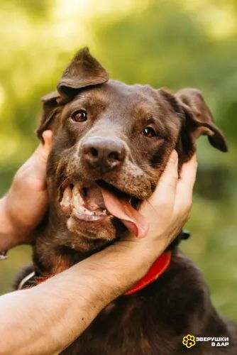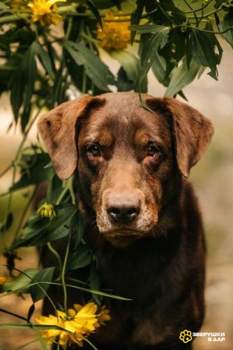 Метис шоколадного лабрадора Валико полон позитива и готов стать вашим лучшим другом.