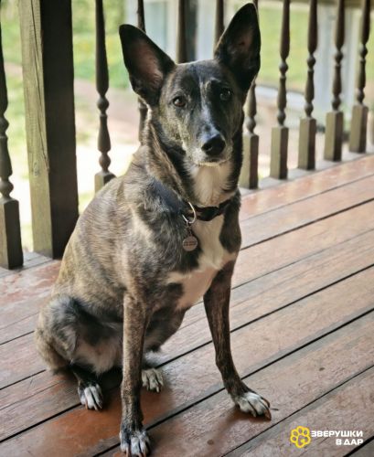 Бетси с полоской на мордочке – девочка - скромняжка, компактная, вес 18 кг., ласковая и спокойная, любит побыть одна, посидеть в сторонке на диванчике, абсолютно ненавязчивая, но, если позвать к себе - оближет с ног до головы. Такая уж она - ласкуша. Бетси очень послушная и тихая как мышка, можно спокойно оставлять одну дома. Возраст 3 года, здорова и привита, приучена к поводку и к выгулу.