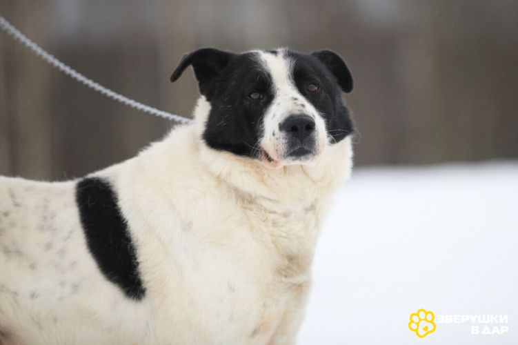 Вглядитесь в этого милого пса, столь готового отдать всю свою нежность тому, кого ещё не обрёл. Возраст Бима — около 4-5 лет, он среднего роста (примерно 55-60 см в холке), кастрирован и привит. Это истинно ласковый и дружелюбный компаньон, мирно сосуществующий с кошками и другими собаками (с кобелями выборочно), и невероятно ласковый с детьми.