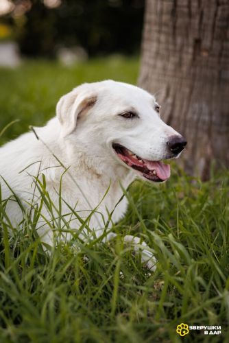 Беляш прекрасно ладит с другими собаками, спокойно реагирует на окружающих и отлично подойдёт как для семьи, так и для человека, который ищет верного друга.