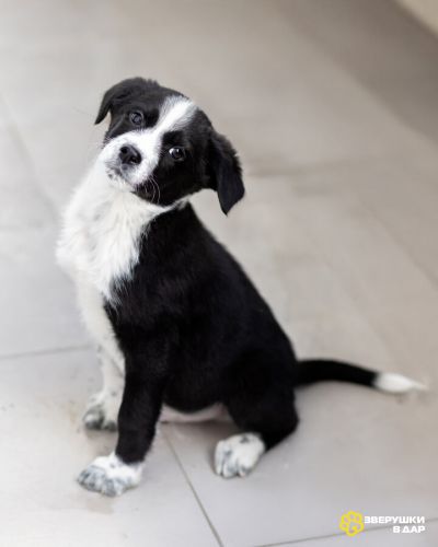 Кроха, выброшенная в морозы на споттинг - Чижик. Он весит сейчас примерно 4 кг. ему не больше 2- месяцев. Мальчик. Очень симпатичной расцветки. Белый с черным. Скорее всего будет крупным (в районе 20 кг), но не гигантом. Привит, здоров, жизнерадостен, не пуглив. Очень стремится к общению с человеком. Классный малец!
