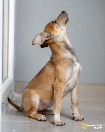 Печенька (бежевая) и Капучинка (шоколадная с белым) - им сейчас 4+ месяца. Девочки. Они здоровы и вакцинированы. Подвижные, веселые, с характером. Щенки весят сейчас около 4 кг. Они точно не будут больше, чем 10 кг, судя по размерам и весу в их возрасте.