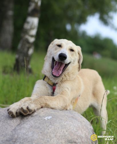 Отлично ходит на поводке, хорошо ездит в машине. Обожает играть в мяч, да и просто в догонялки, если разыграется, может щипаться как гусь).