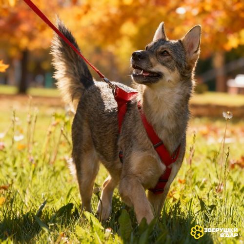 Дома Леди ведет себя спокойно, терпит всё, что положено квартирной жизни. На прогулках она пример для других: уверенно идёт на поводке, дружелюбна с собаками, к кошкам относится спокойно. Активная, игривая, но без истерик в ней есть баланс: жизнь с ней комфортна, безопасна и радостна.