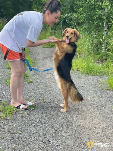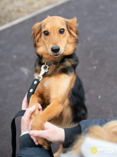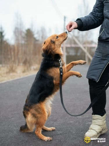 Любит побегать и поиграть с небольшими собаками, больших-опасается.