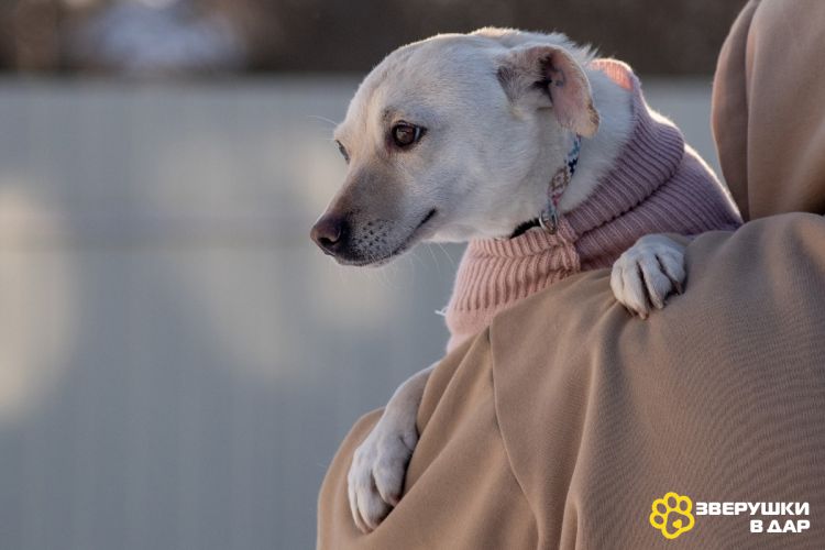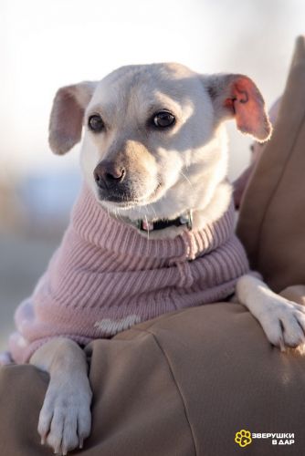 Возраст около 2 лет, вес 8,5 кг, рост в холке всего 33 см. Обработана, привита, стерилизована, имеет ветеринарный паспорт. С собаками и кошками мила и доброжелательна, знает поводок, прекрасно ведёт себя на прогулке, поводок не тянет, спокойно переносит поездки в машине. Очень человекоориентированная и ласковая. В начале немного стеснительная, но очень быстро привыкает к своему человеку.