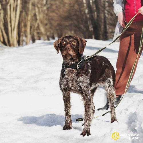 Линде примерно 4-5 лет, здорова, стерилизована, привита, чипирована. Очень спокойная, послушная, добрая собака. Жесткошерстная, не линяет, подходит для содержания в квартире. Знает команды, полностью ориентирована на человека. Очень любит ездить в машине, долго гулять. На прогулке следит за хозяином, далеко не отходит. С сородичами контакт хороший, с кошками неизвестно! Отдаётся строго не для охоты, как собака-компаньон. По договору об ответственном содержании, с проводами до ПМЖ.